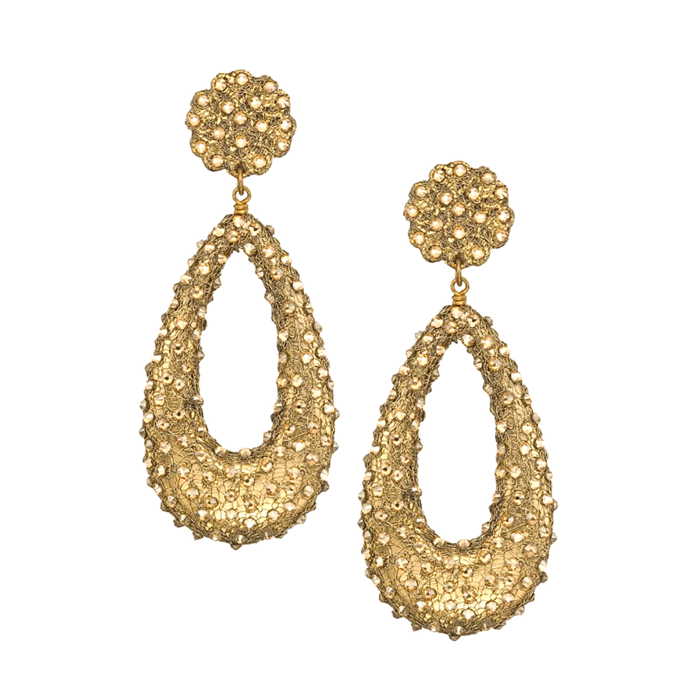 Roni Blanshay Swarovski Crystal Sprayed Open Teardrop Gold Mesh Earring
