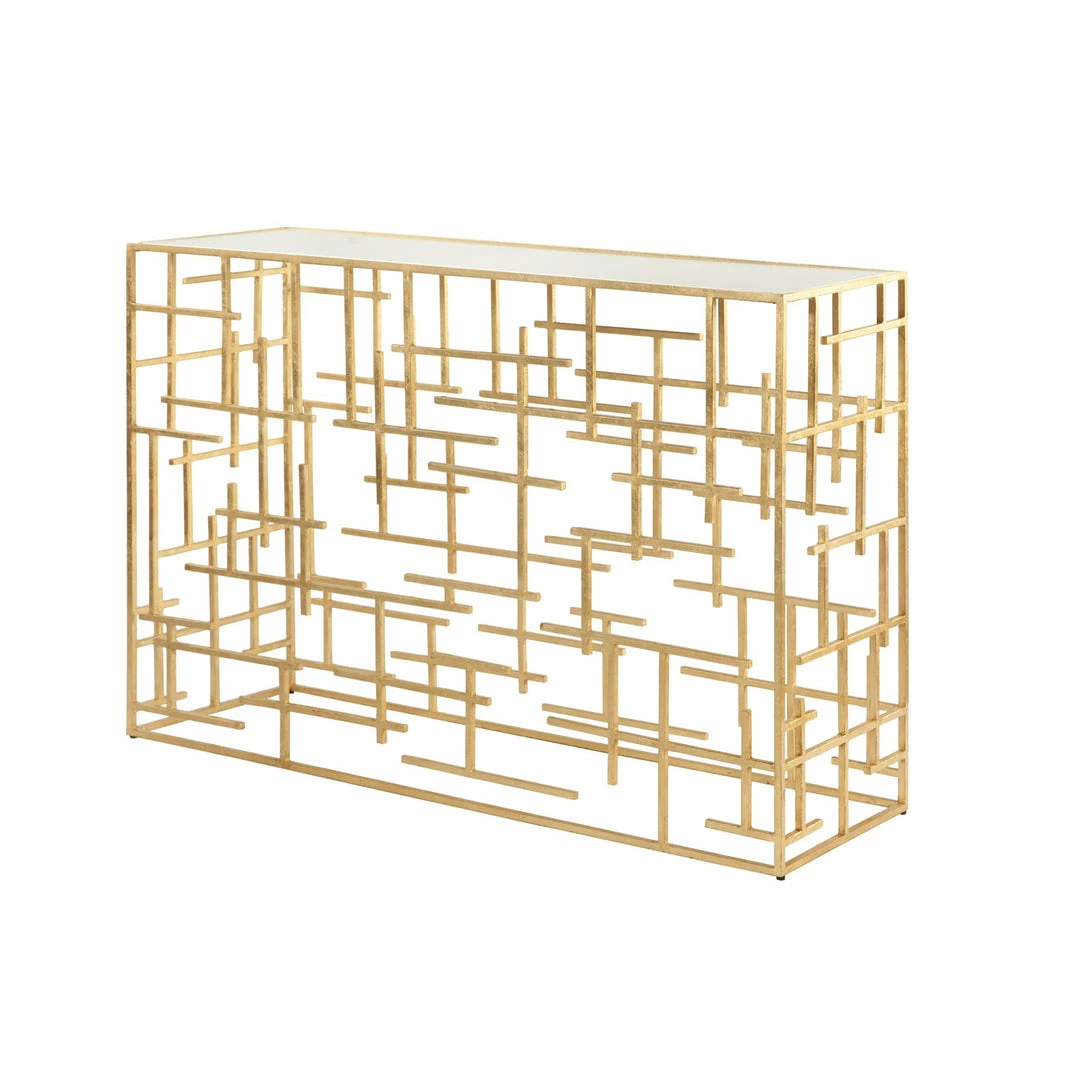 GOLD LEAF ABSTRACT CONSOLE WITH MIRROR TOP
