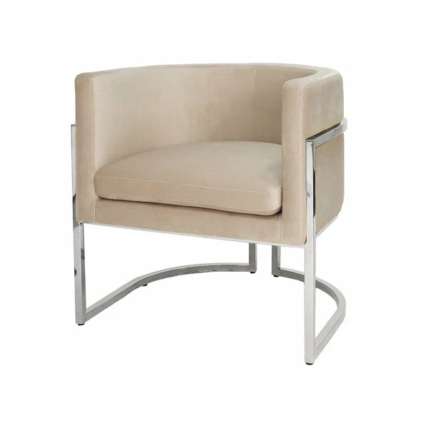 NICKEL FRAME BARREL ARM CHAIR IN CREAM VELVET