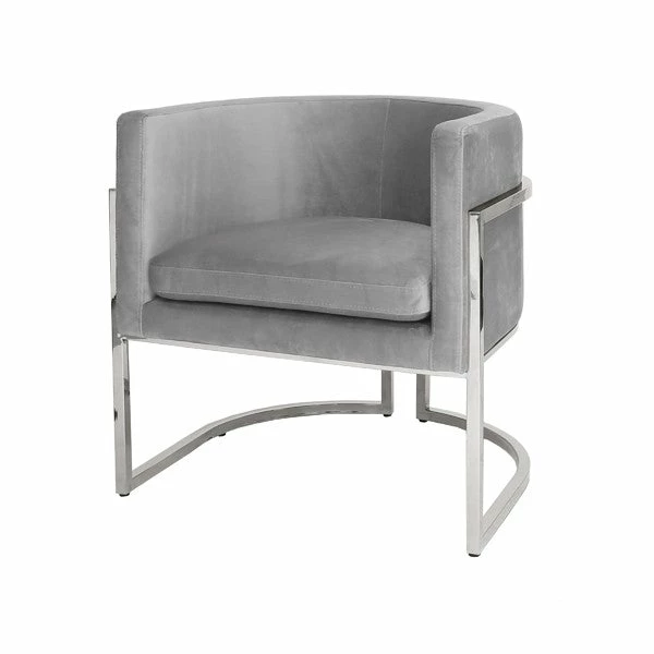 NICKEL FRAME BARREL ARM CHAIR IN GREY VELVET