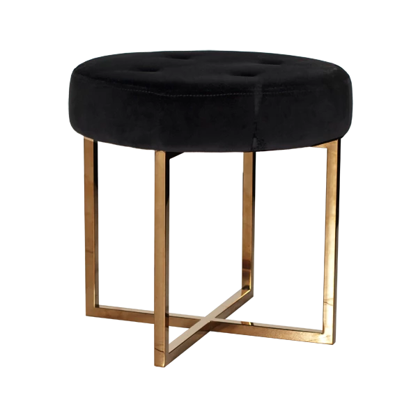 BLACK VELVET ROUND STOOL WITH BRASS BASE