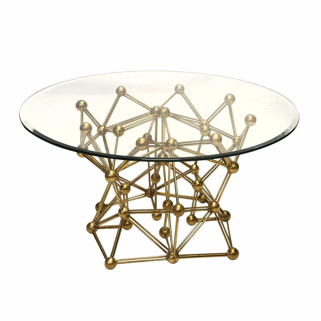 GOLD LEAF IRON SIDE TABLE W. 36″ DIA GLASS TOP